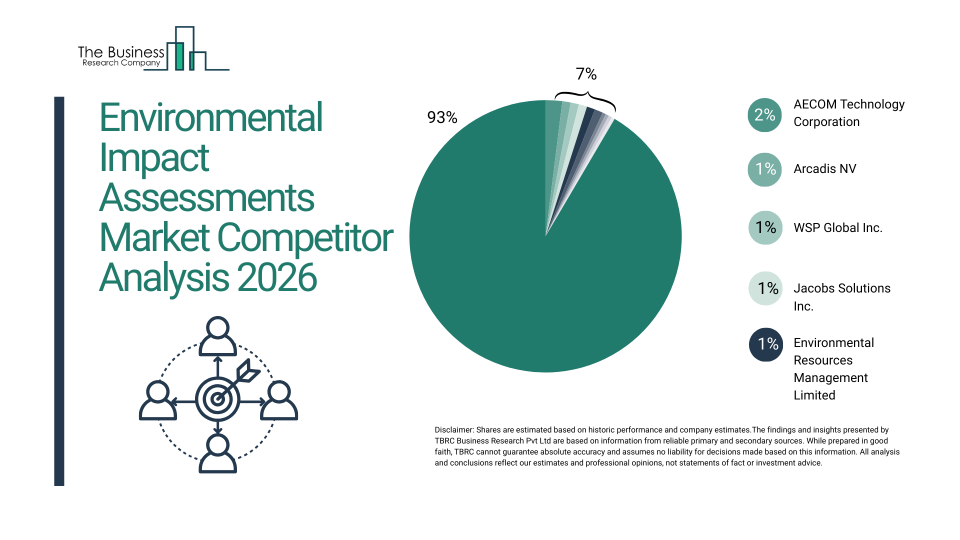 LONDON, GREATER LONDON, UNITED KINGDOM, March 23, 2026 /EINPresswire.com/ -- "The environmental impact assessment market is dominated by a mix of global engineering and consulting firms, environmental advisory organizations, and specialized sustainability and compliance service providers. Companies are focusing on advanced environmental modeling tools, GIS-based impact analysis, regulatory compliance expertise, and integrated sustainability assessment frameworks to strengthen market presence and enhance project evaluation capabilities. Emphasis on climate risk assessment, biodiversity impact studies, digital reporting platforms, and ESG-aligned advisory services remains central to competitive positioning. Understanding the competitive landscape is essential for stakeholders seeking regulatory alignment, sustainable project development, risk mitigation, technological innovation, and strategic collaborations within the evolving environmental planning and compliance ecosystem.